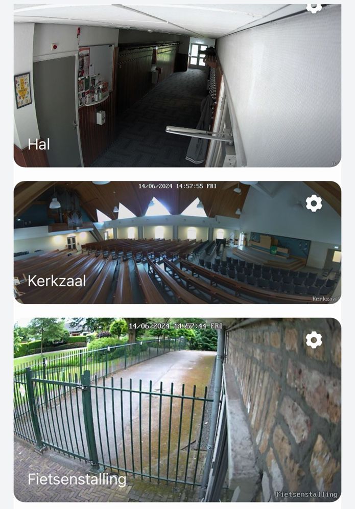 In de kerkzaal worden camera’s gebruikt voor: